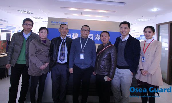 2016年3月7日上午,海南省防水協(xié)會會長孫慶生、常務(wù)副會長孫彥濤、江蘇鹽城市康泰建筑灌漿技術(shù)有限公司高工陳森森考察團一行蒞臨歐西建科南京總部進行參觀考察,歐西建科王洪波總經(jīng)理、郭紅副總經(jīng)理進行了熱情接待并陪同座談。