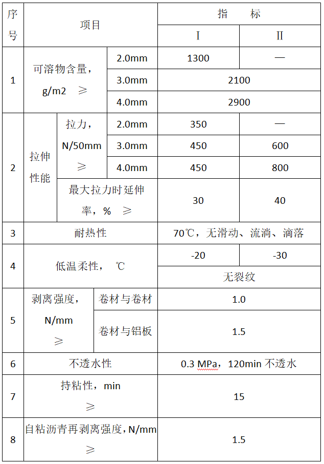 按物理性能分為I型 和II型,卷材厚度為2.0mm的PY類(lèi)只有Ⅰ型。
